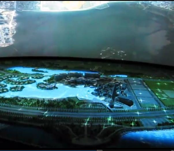 项目亮点:为了全景式展现即墨丁字湾新城的地理位置、自然环境以及整体布局,壹码视界为即墨丁字湾设计的数字沙盘,采用沙盘和弧幕相结合的形式。数字沙盘面积80平米,弧幕长18米,高5米,带给观众强烈的视觉冲击和身临其境的真实体验。